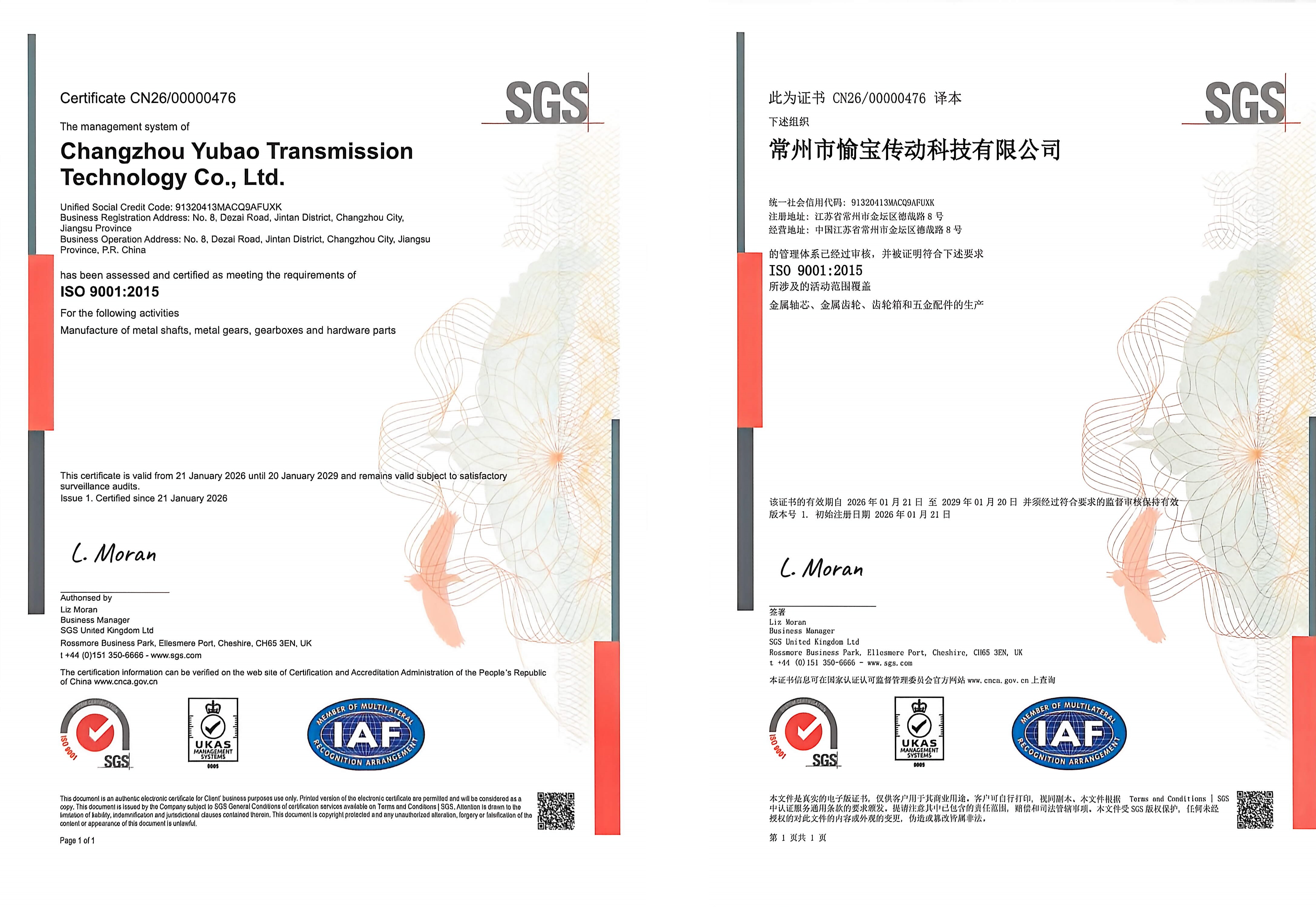 With excellent product quality and superior service, Yubao Transmission Technology has received multiple authoritative certifications and customer recognitions: